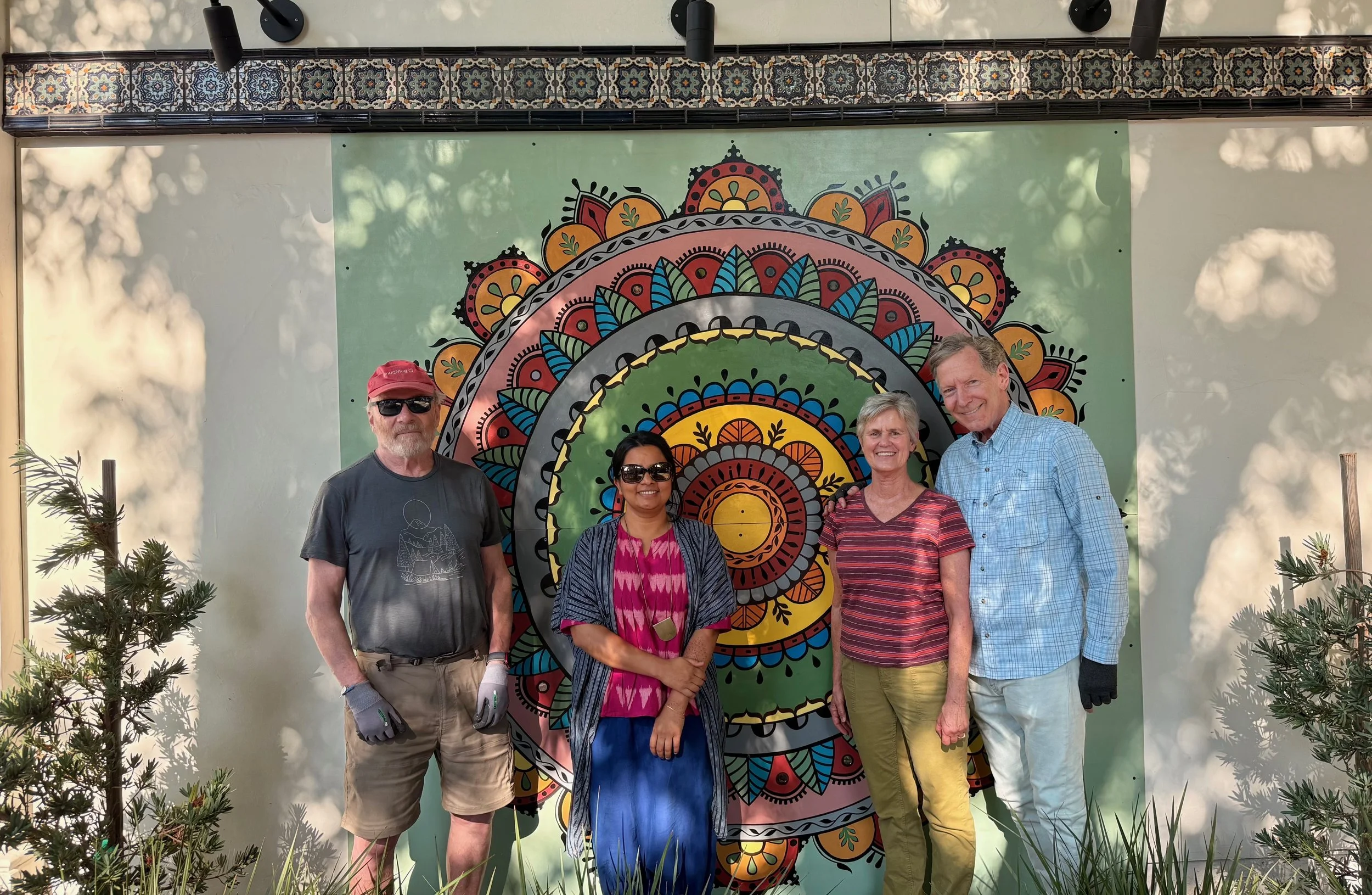 The Interconnectedness of Life, Mandala by Swati Rastogi was painted by the community and visitors at the July 2025 Los Altos Arts & Wine Festival sponsored by the Los Altos Village Association (LAVA). Volunteers for Arts Los Altos recently installed the mural on the side of State Street Market facing Third Street.